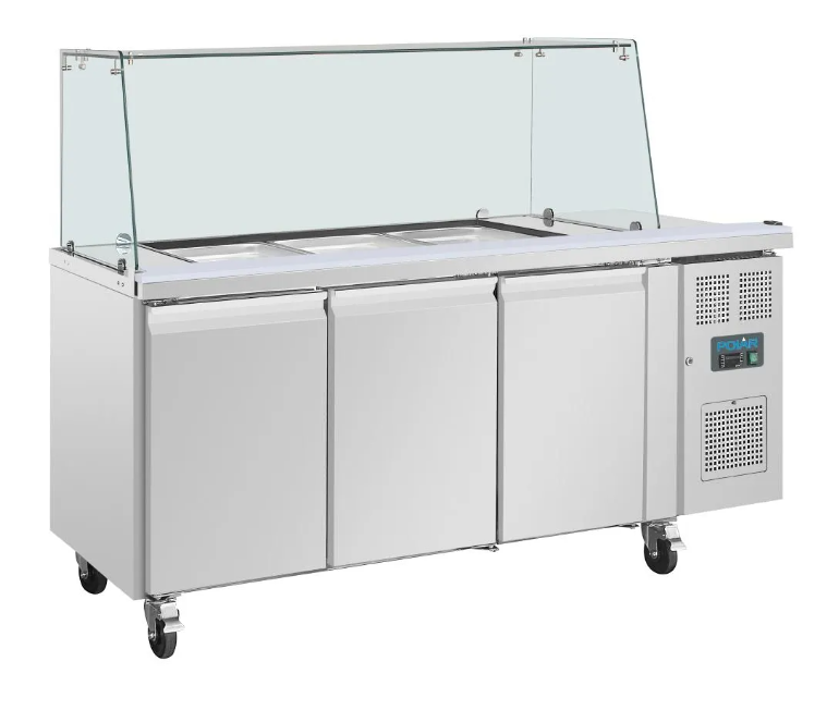 Polar U-Series GN Saladette Counter with Square Sneeze Guard 3 Door