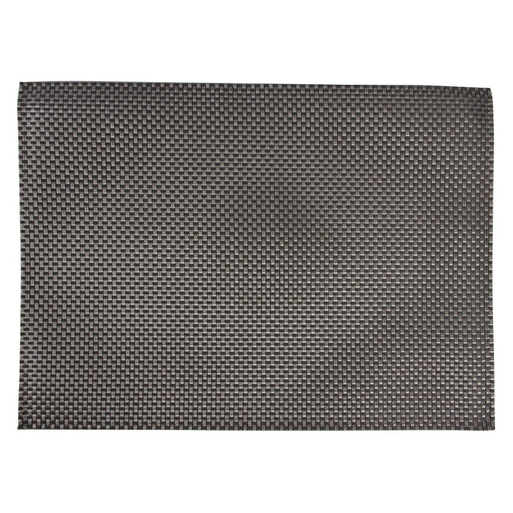 Size: 450(W)x 330(D)mm. Pack quantity: 6. Colour: Silver & grey. Finely woven PVC placemats available in a variety of colours.