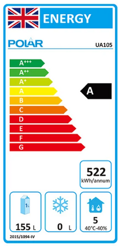 300W. Net capacity: 155 Ltr. 2 shelves The Polar U-Series double door slimline counter fridge offers an efficient and practical chilling solution for the commercial kitchen. Combining reliable high-performance GN-compatible...